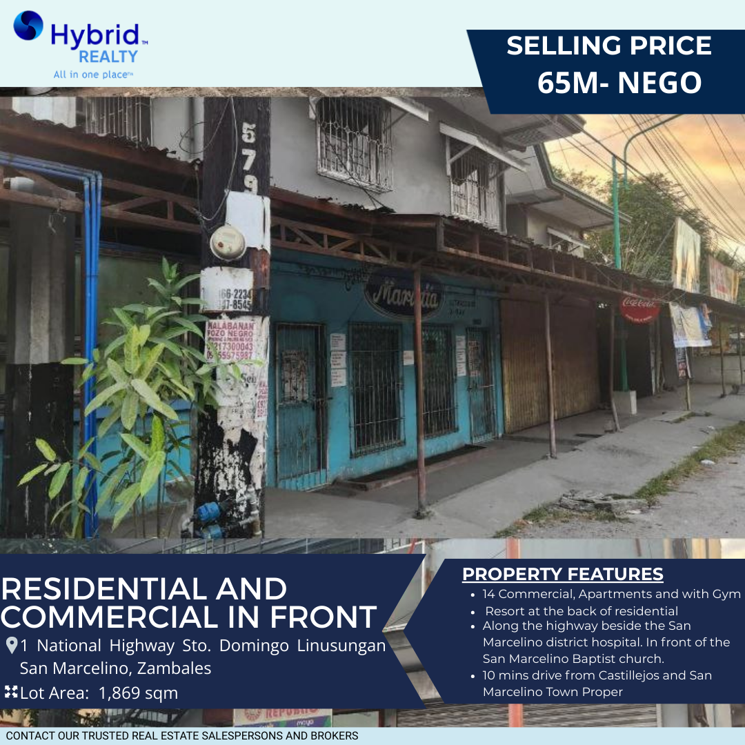 JUST LISTED! Residential and Commercial in Front of San Marcelino, Zambales