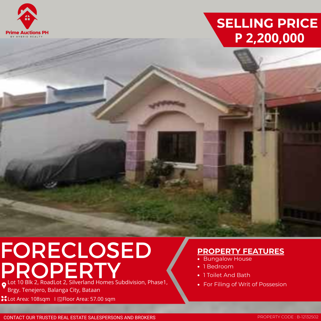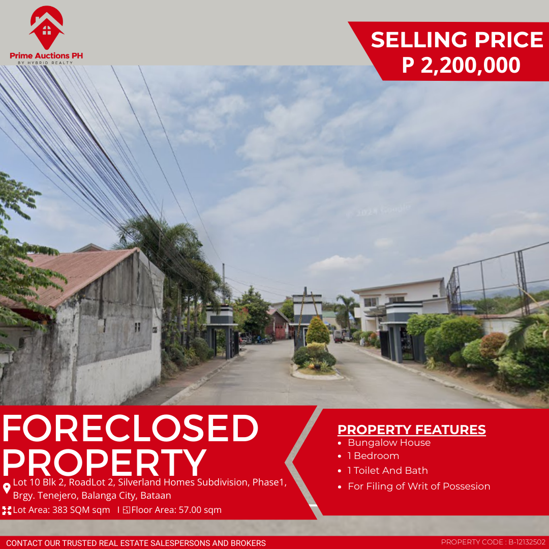 Location: Lot 10 Blk 2, Road Lot 2, Silverland Homes Subdivision, Phase 1, Brgy. Tenejero, Balanga City, Bataan